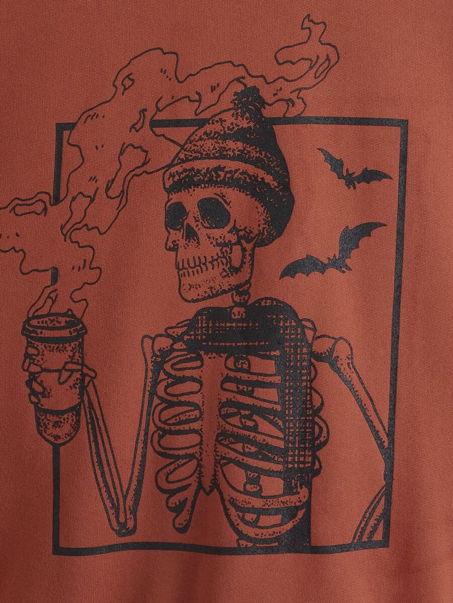 Skeleton Graphic Drop Shoulder Thermal Sweatshirt