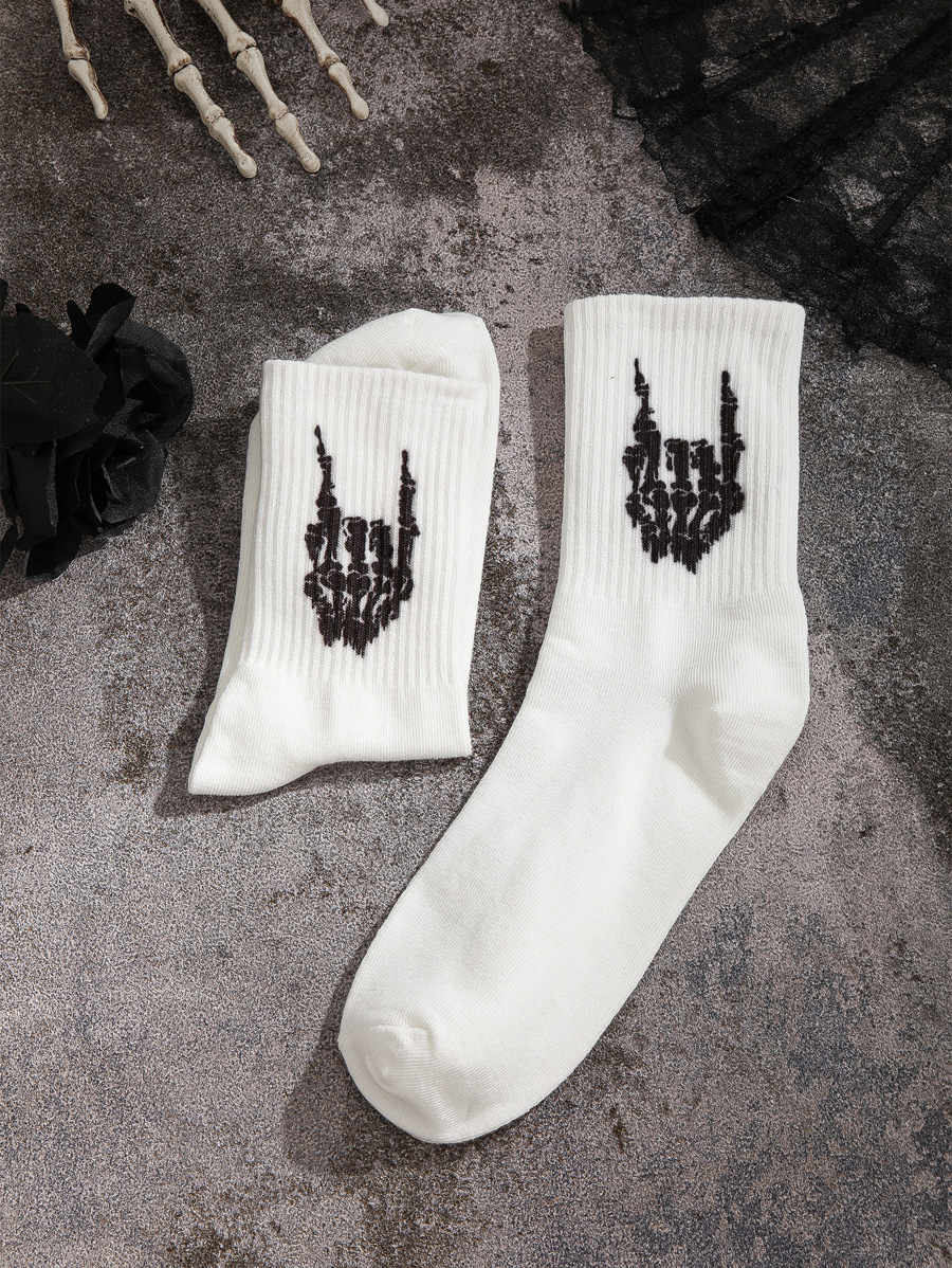 Skeleton Hand Print Crew Socks, Fall, Halloween