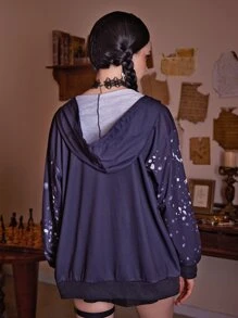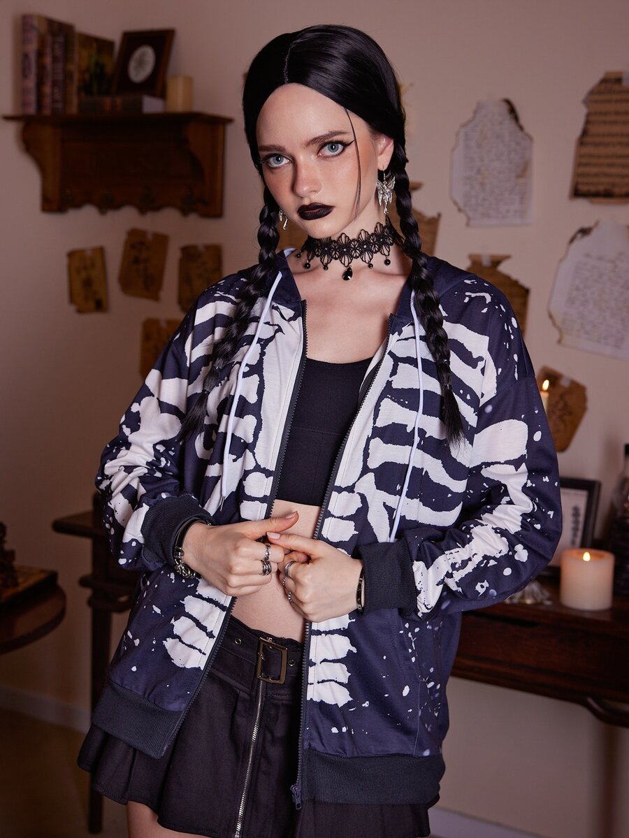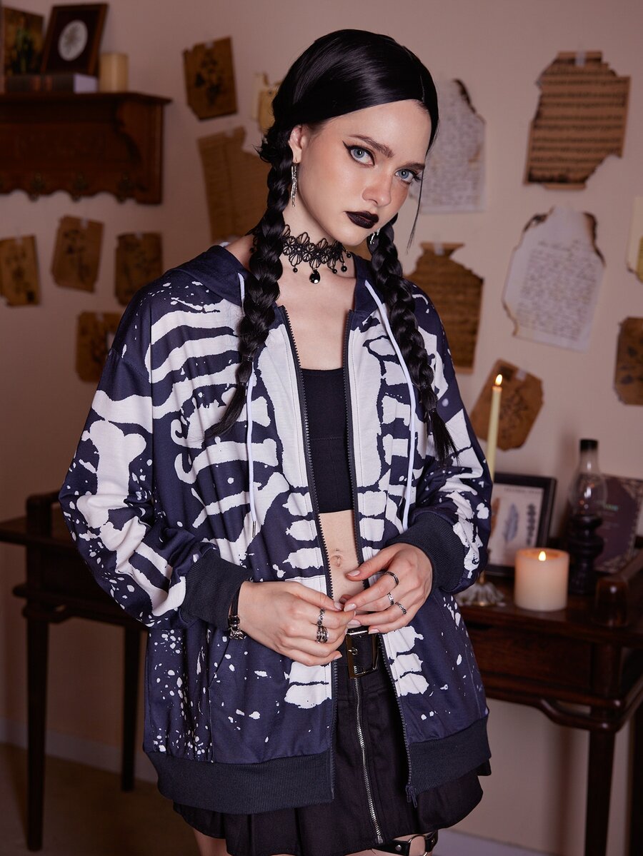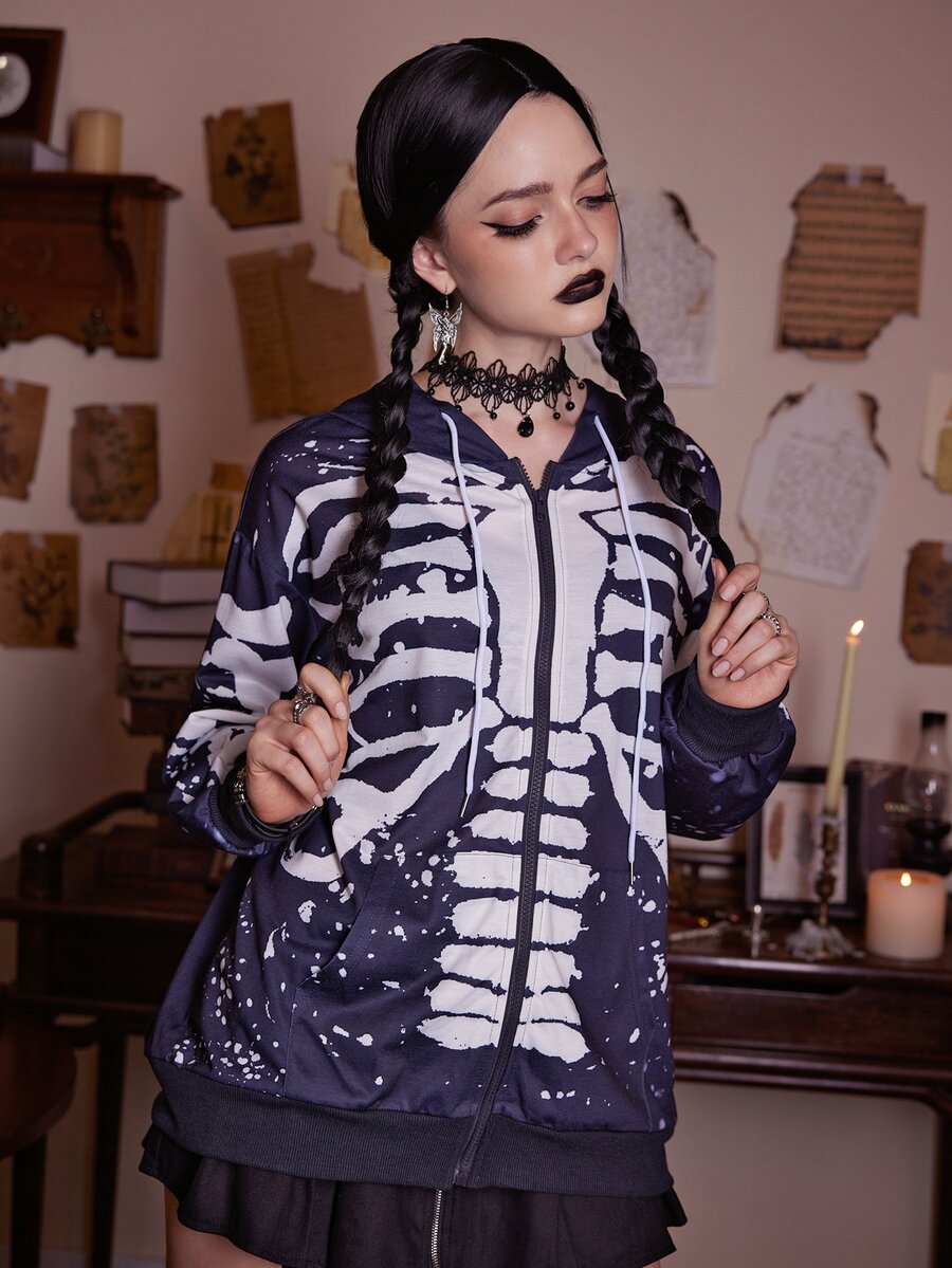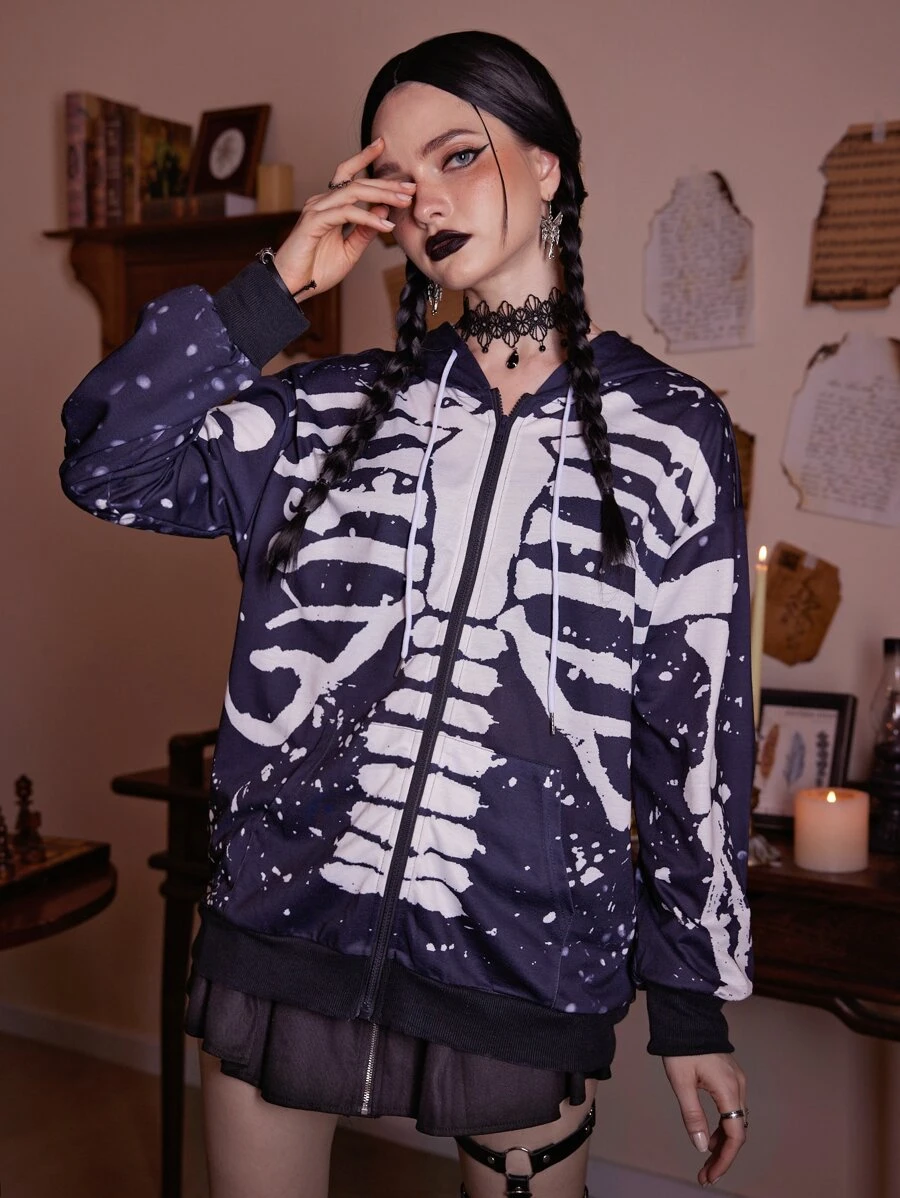 Skeleton Print Zip Up Hoodie