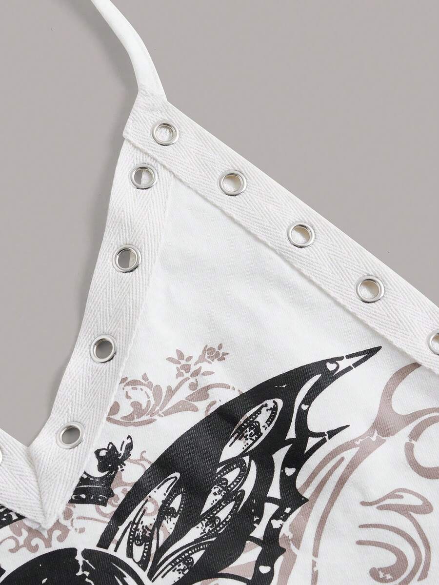 Skull & Slogan Graphic Tie Backless Halter Top Enjoy Being A Standout Break Keep Your Passion