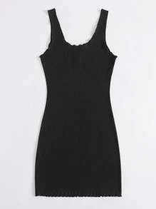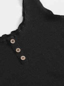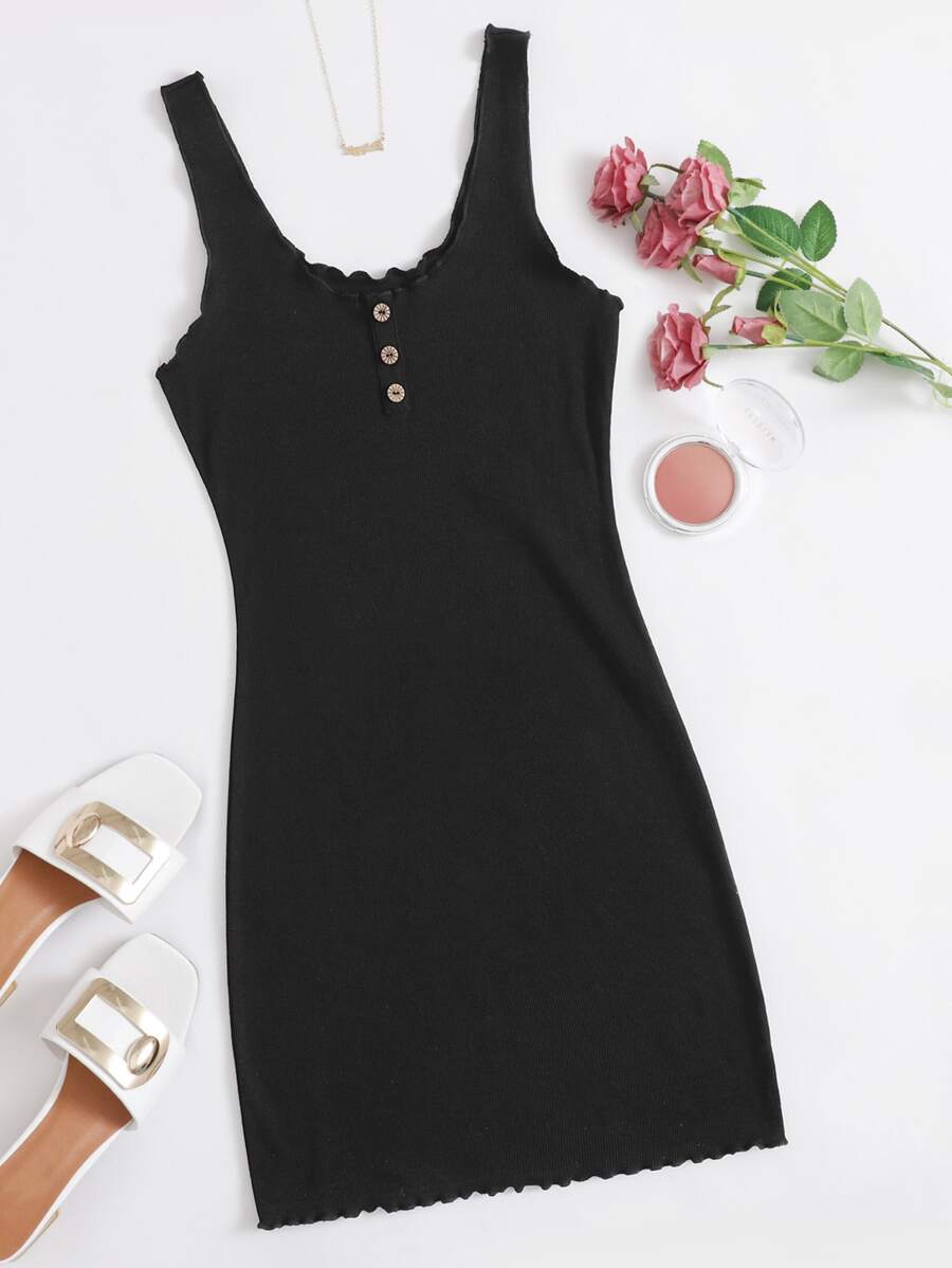 Sleeveless Buttoned Front Lettuce Trim Dress