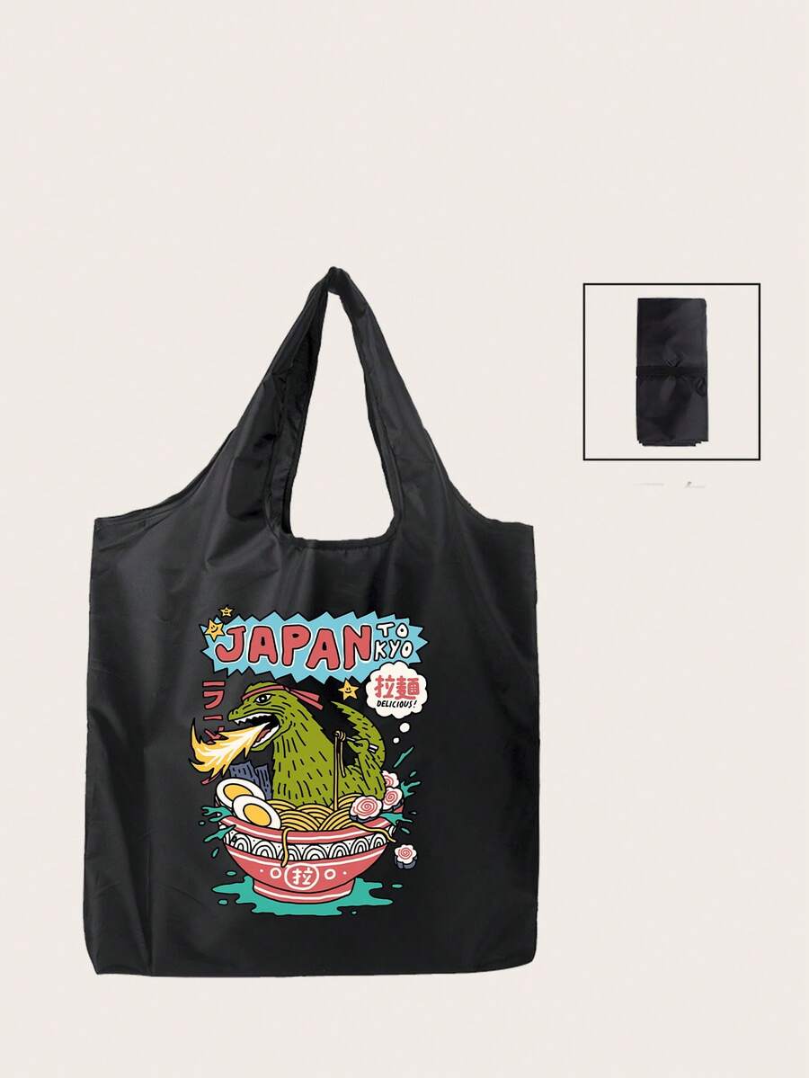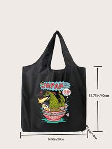 Sober Artwerk Anime Ladies' Cartoon Printed Black Tote Bag