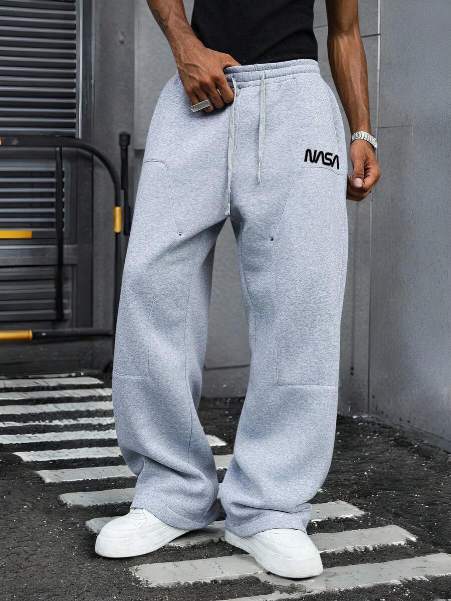 Street Life Solid Color Straight Leg Loose Fit Casual Sports Pants, Unisex Street Style