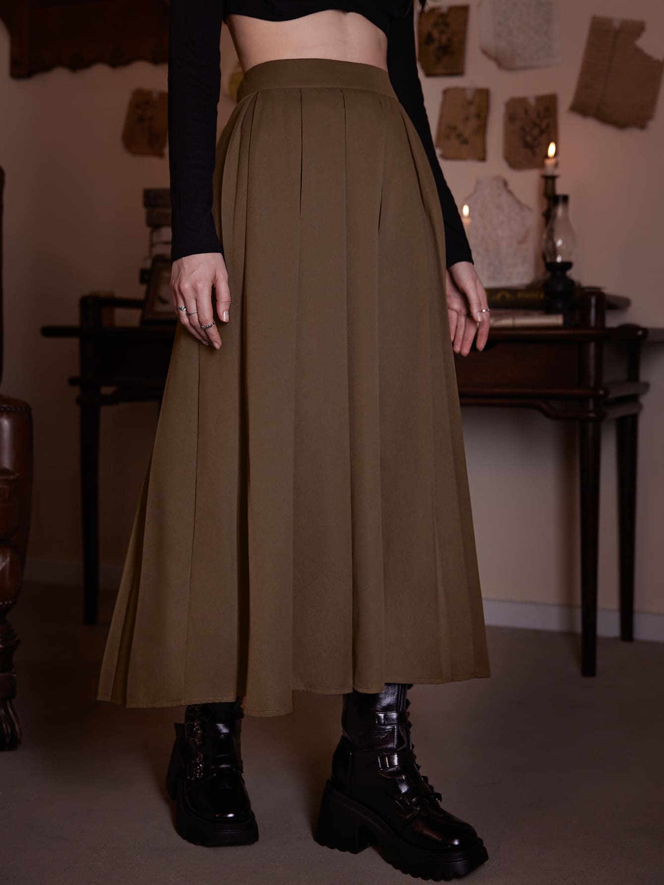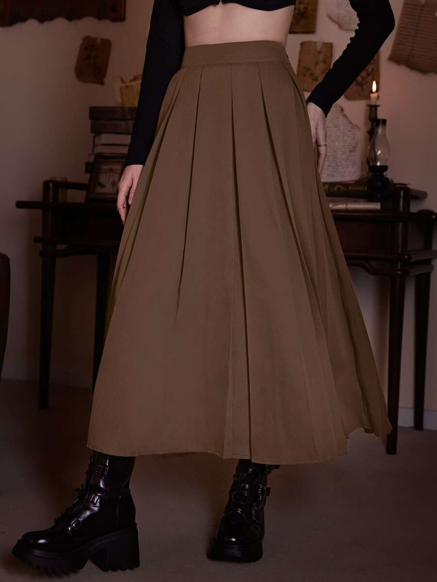 Academia Solid Pleated Skirt