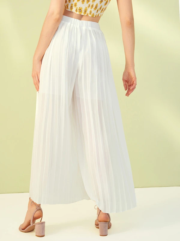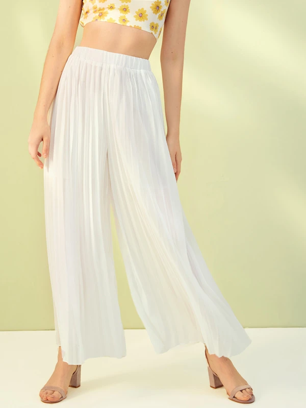 Solid Plisse Wide Leg Pants
