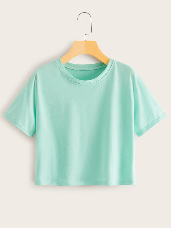 Solid Round Neck Short Sleeve Tee