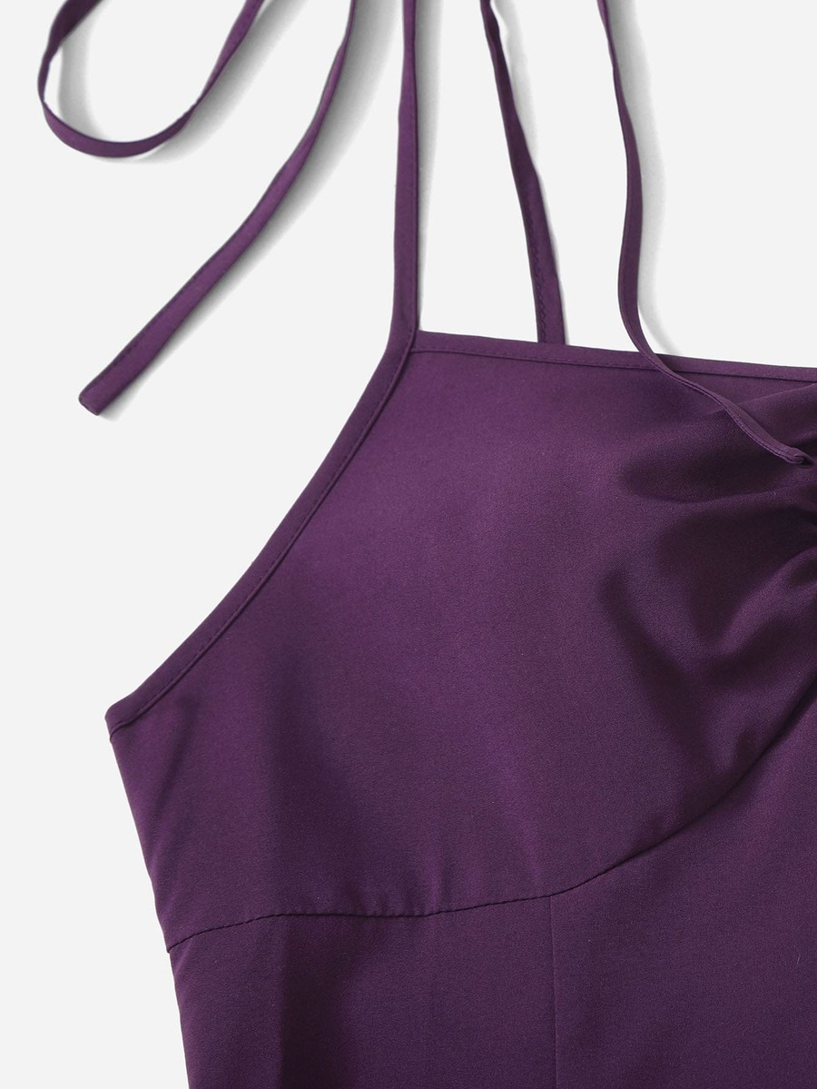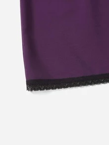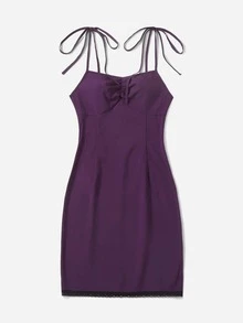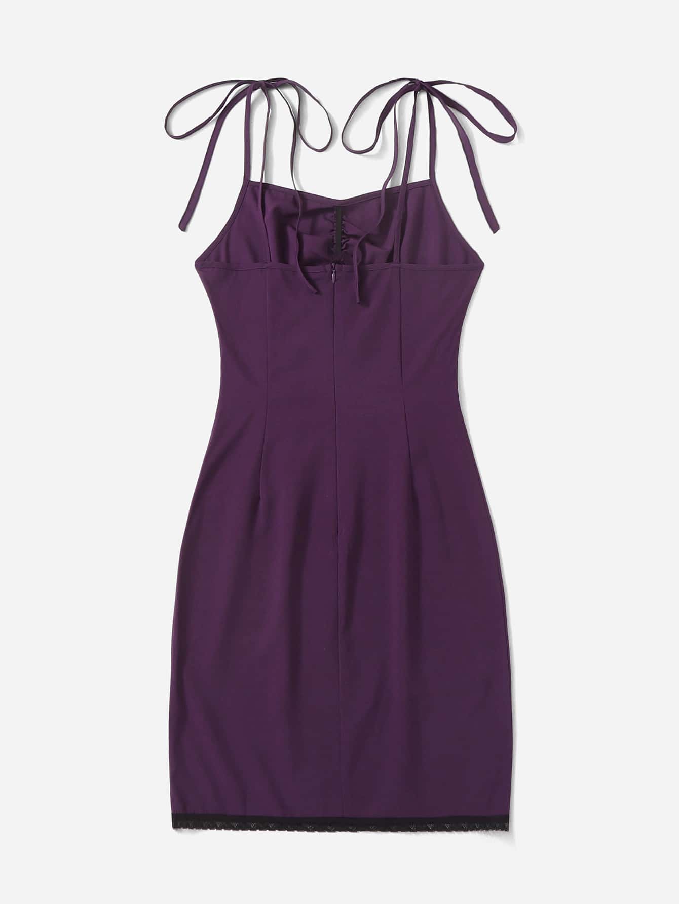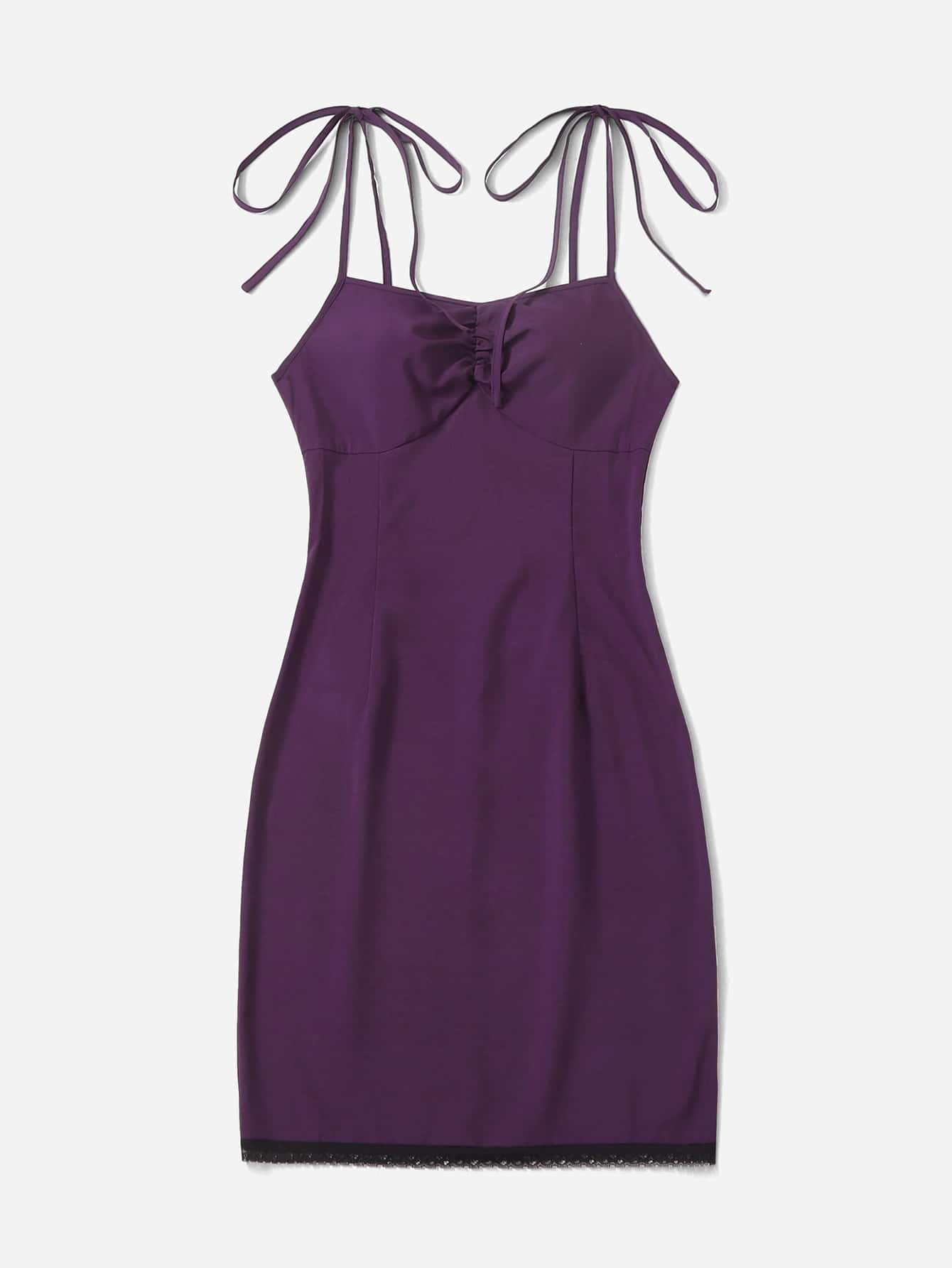 Solid Ruched Tie Shoulder Contrast Lace Cami Dress
