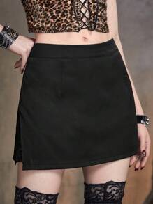 Grunge Punk Solid Split Hem Skirt
