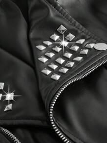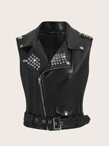 Solid Zip Up PU Leather Vest Jacket Without Top