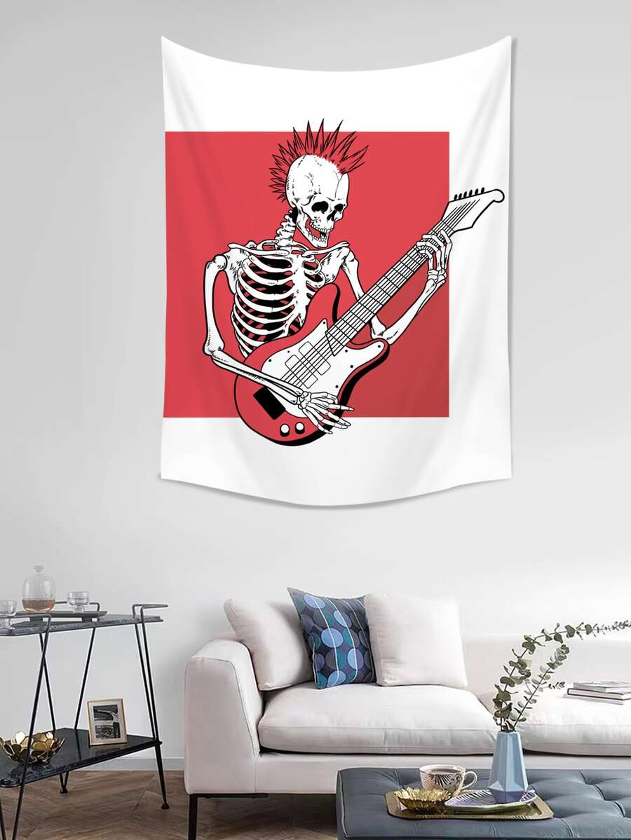Sonchs Curiosities Skeleton & Guitar Print Tapestry