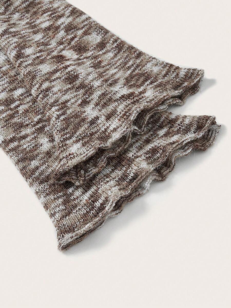 Space Dye Off Shoulder Trumpet Sleeve Crop Sweater