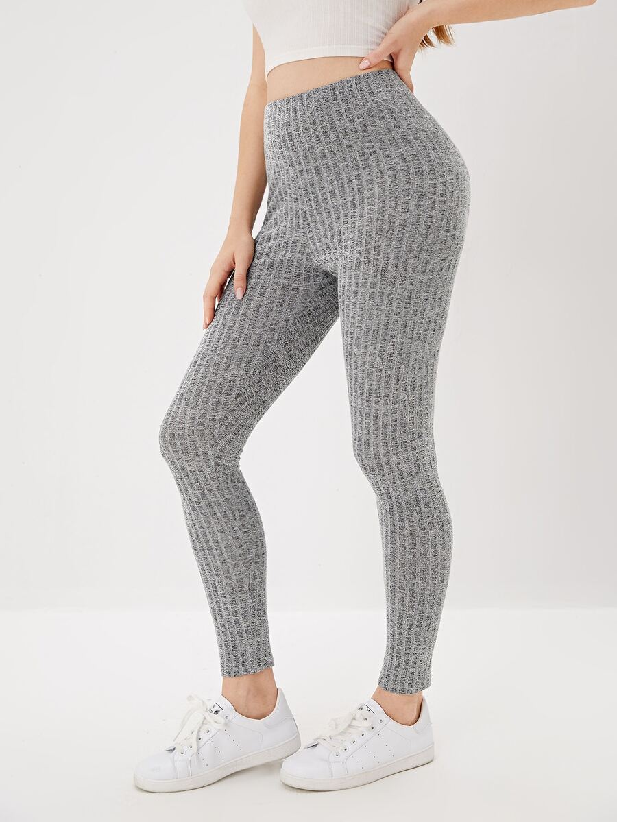 Split Hem Rib-knit Leggings