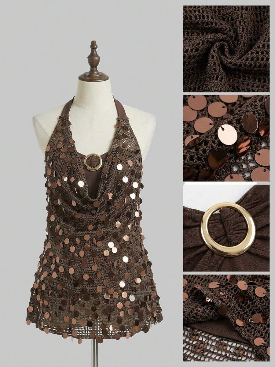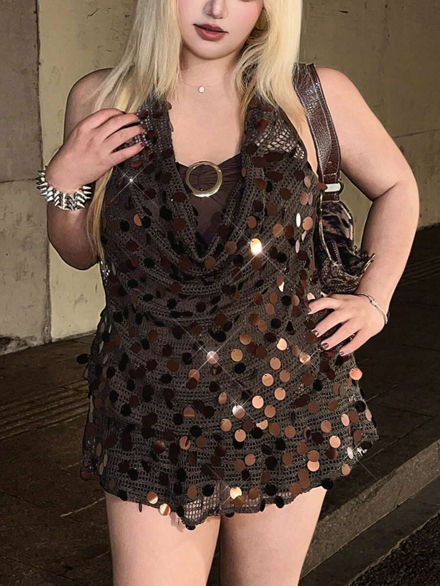 Spring/Summer Plus Size Retro Hippie Sequin Fabric Metal Decor Strapless Camisole (Includes Bandeau Bra) Valentine's Day Party
