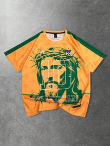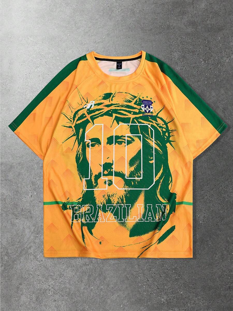 Prep Spring/Summer Casual Graphic Men'S Raglan Sleeve Round Neck Creative Portrait Graphic Versatile Football Print Short Sleeve T-Shirt Jersey