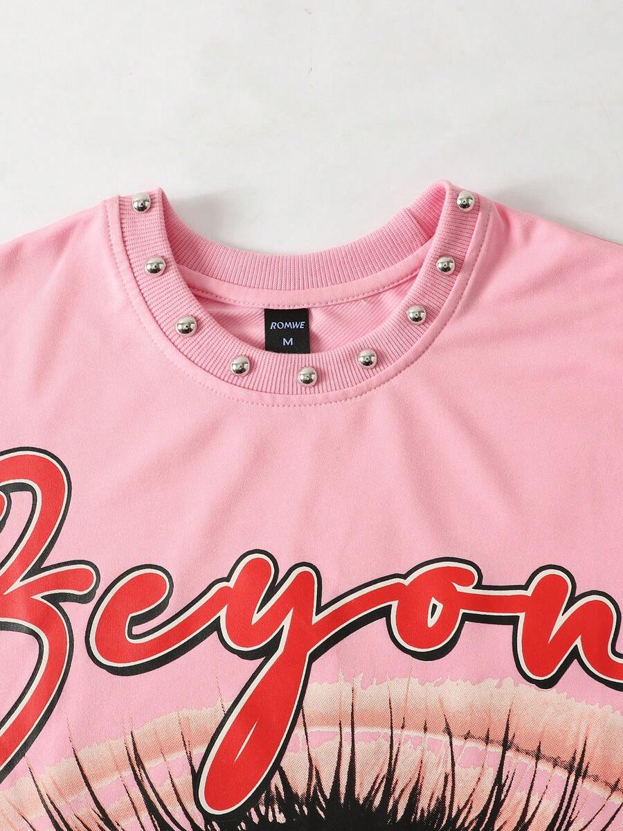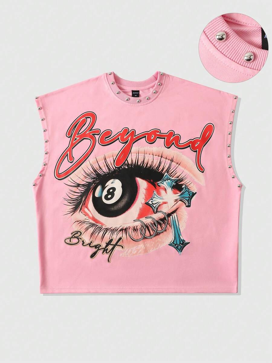 Street Life Spring/Summer Casual Graphic Pink Men'S Y2K Fashion Street Sunglasses, Letter & Cross Print Rivet Decor Loose Tank Top, Summer