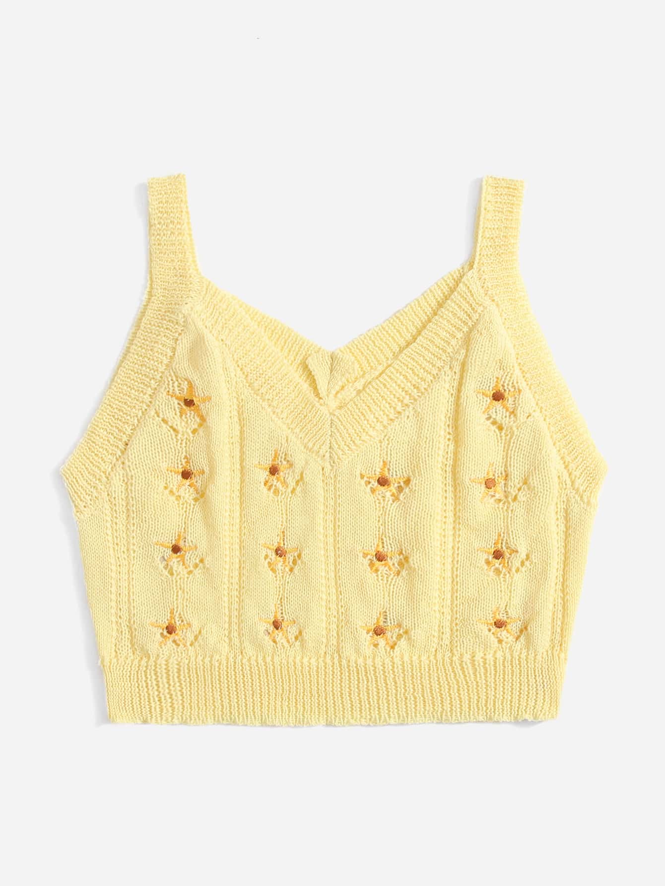 Star Embroidery Cami Knit Top