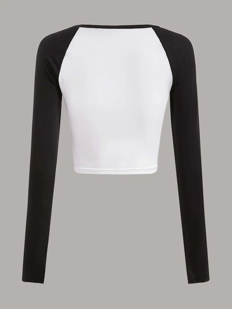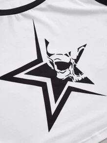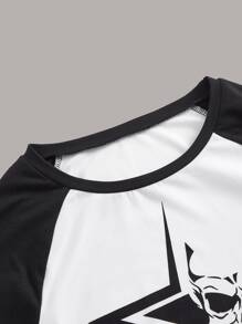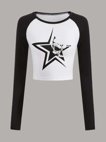 Star & Skull Print Color-block Raglan Sleeve Tee