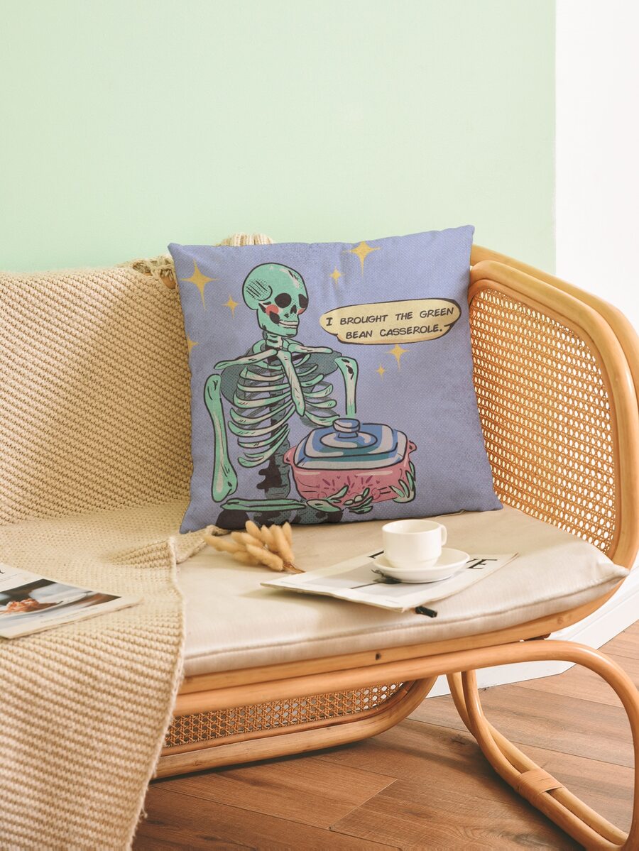 Stardust Salvage 1pc Slogan & Skeleton Print Cushion Cover Without Filler