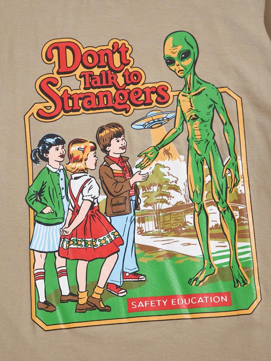 Stevenrhodes Men Cotton Alien & Slogan Graphic Tee, School
