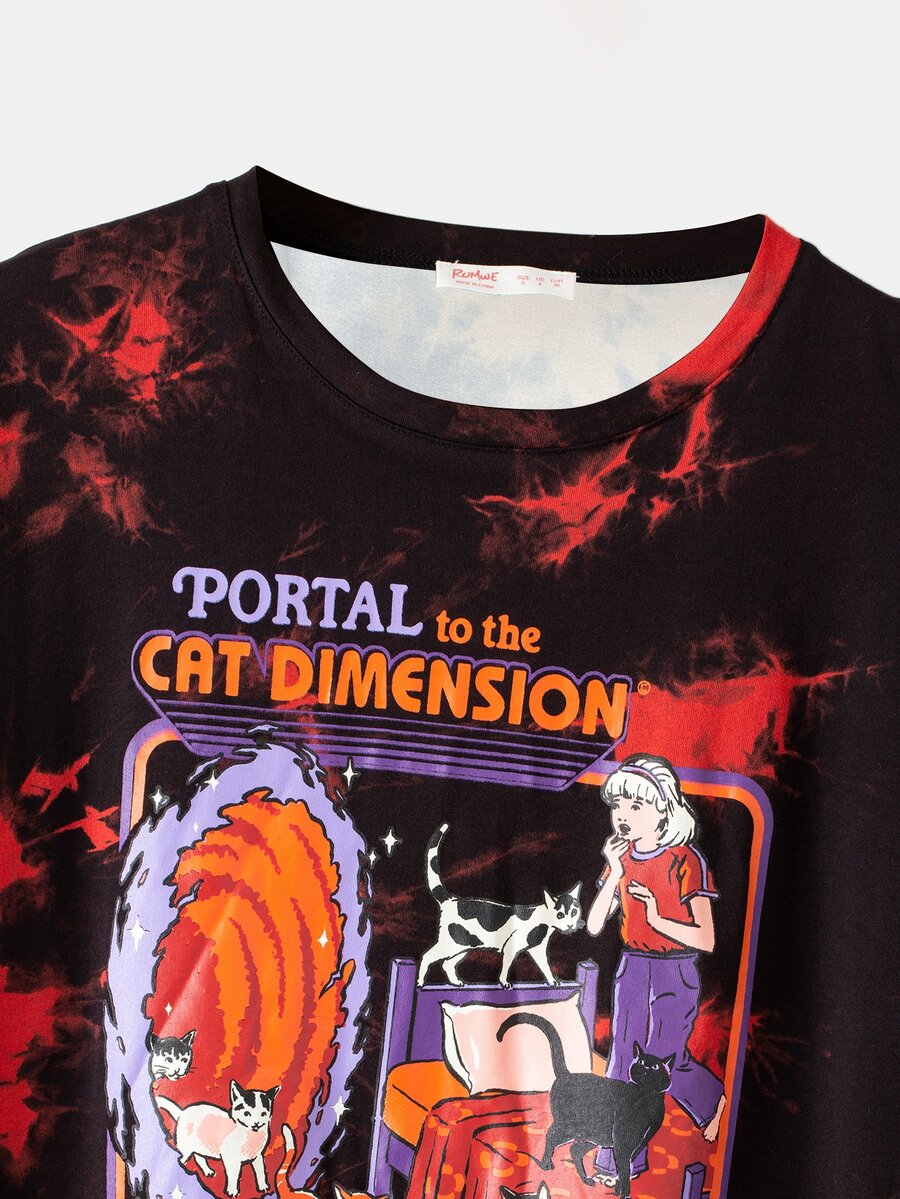 Stevenrhodes Tie Dye Cartoon Cat & Figure Print Tee