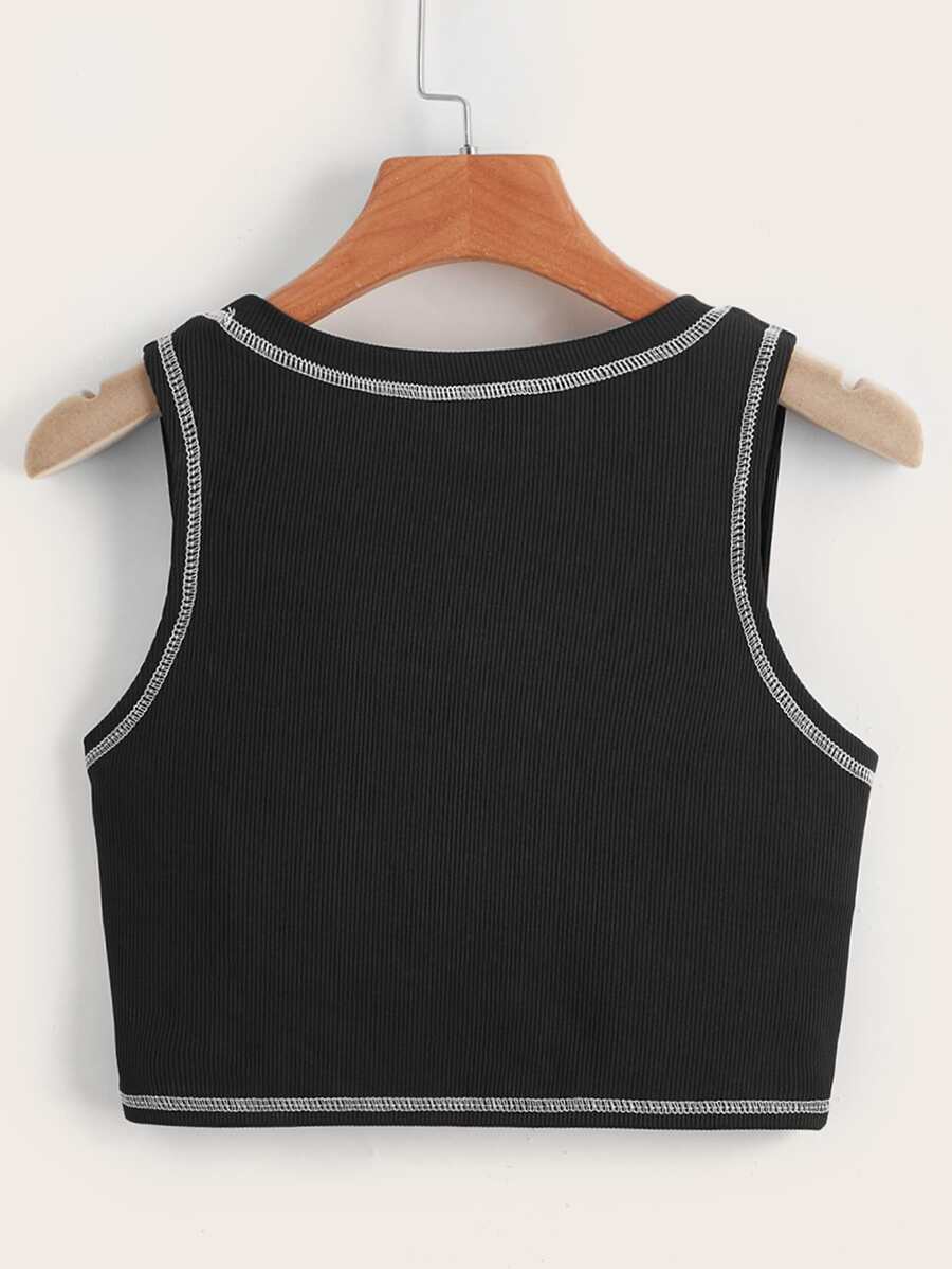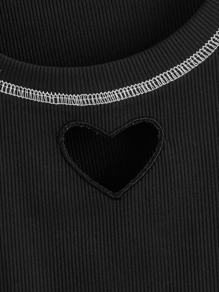 Stitching Trim Heart Cut Out Ribbed Tank Top