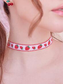 Strawberry Embroidered Choker