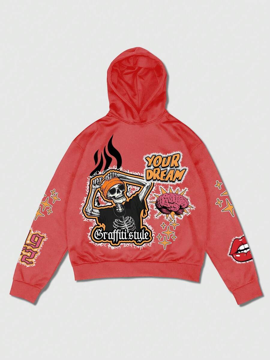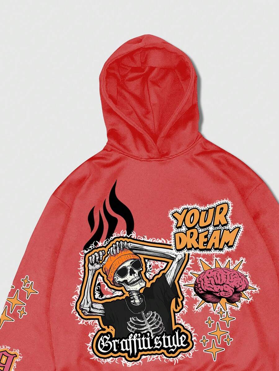 Street Life 2pcs Men's Skeleton Letter Print Hoodie And Sweatpants Set, Halloween