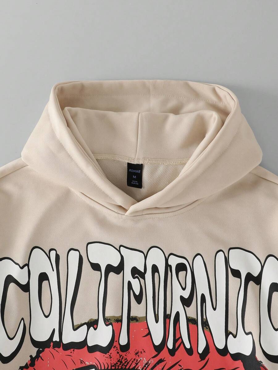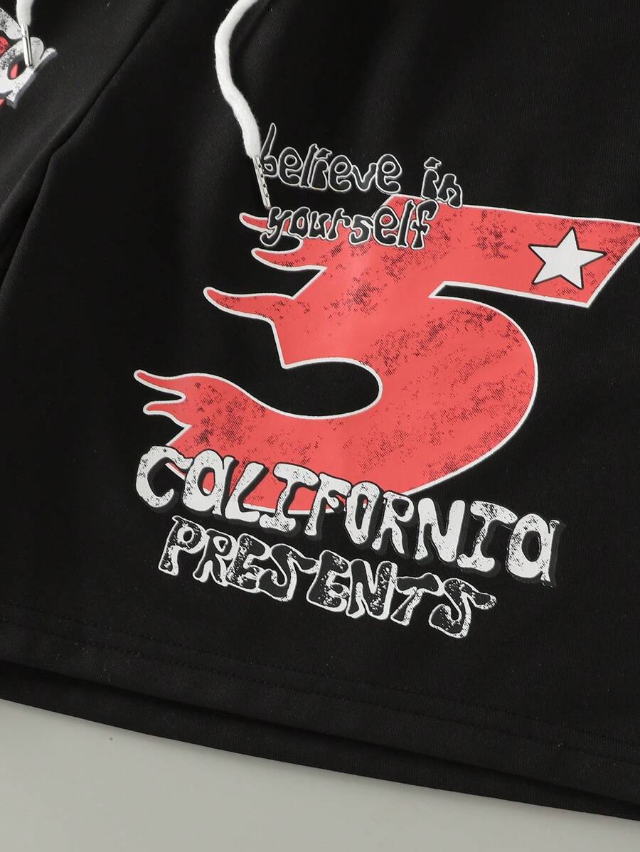 Street Life 2pcs/Set Men Funny Cartoon Portrait Print Sweatshirt & Shorts Tracksuit, Streetwear