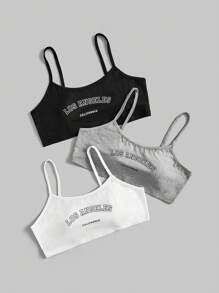 Street Life 3pcs Letter Print Pajama Set With Camisole Top