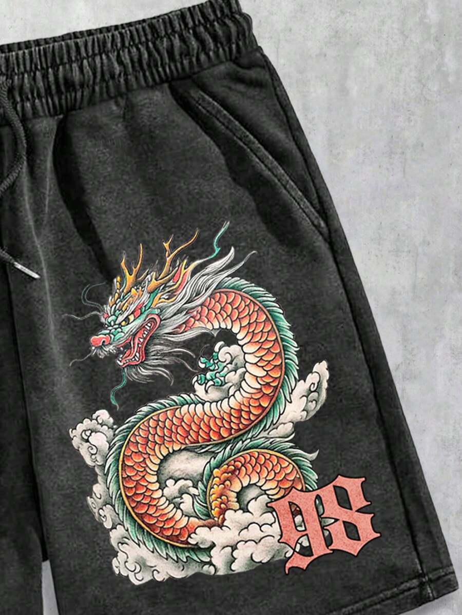 Anime New Men's Casual Cotton Fashionable Sports Shorts With Dragon Pattern