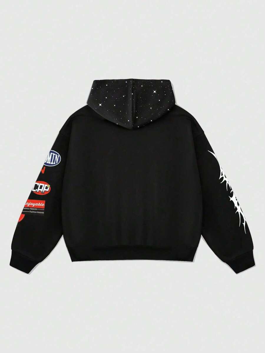 Street Life Boy's Loose Cropped Sweatshirt Sweatshirt With Shiny Sequin Decor, Streetwear