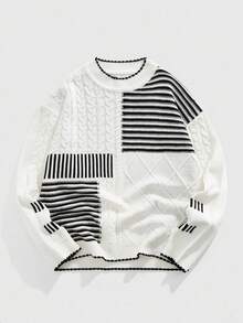 Street Life Casual Loose Fit Crew Neck Long Sleeve Men Sweaters, Fall Winter