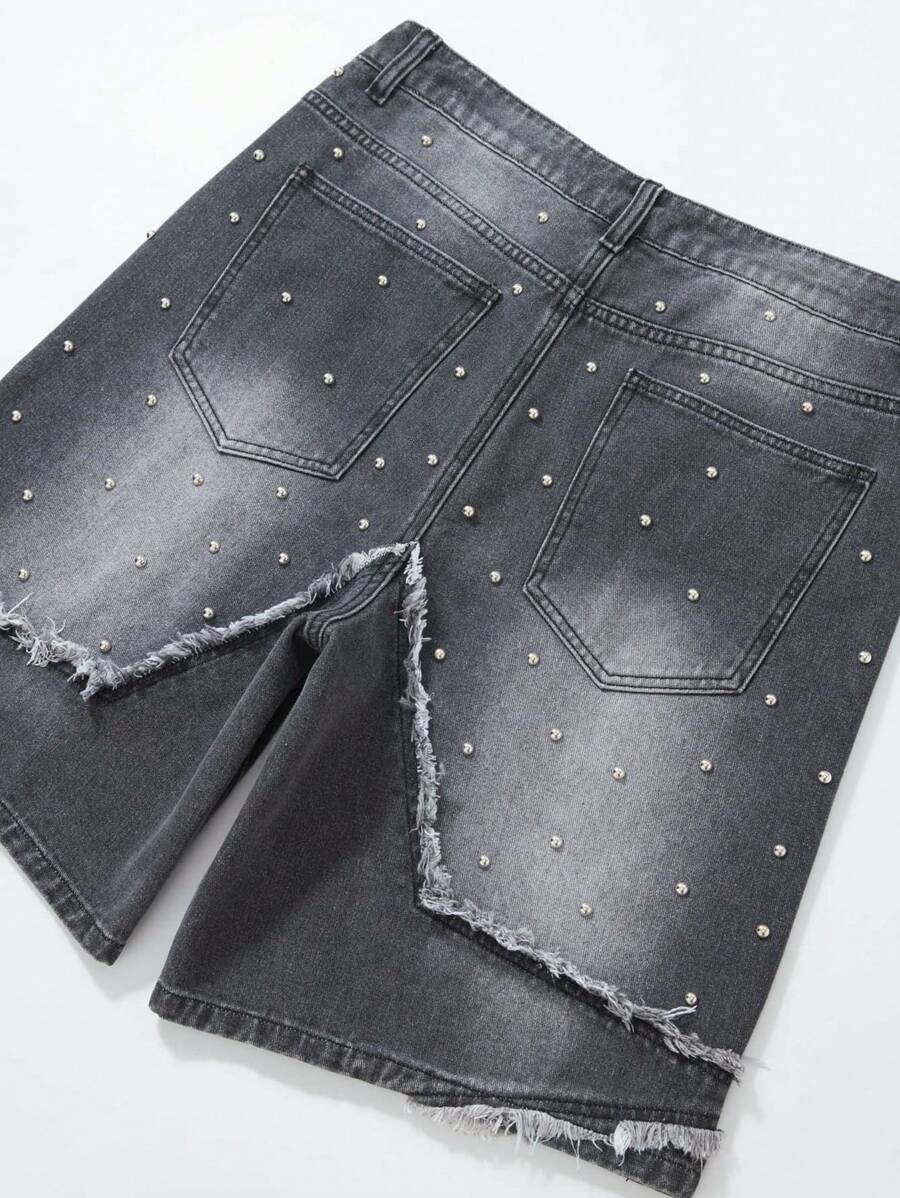 Street Life Casual Men's Distressed Denim Shorts With Letter Print And Studded Decor