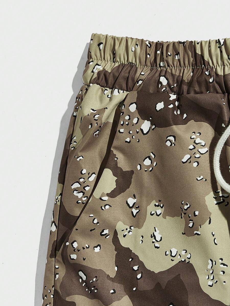 Street Life Guys Camo Print Striped Trim Drawstring Waist Shorts