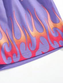 Street Life Guys Fire & Letter Graphic Drawstring Waist Shorts