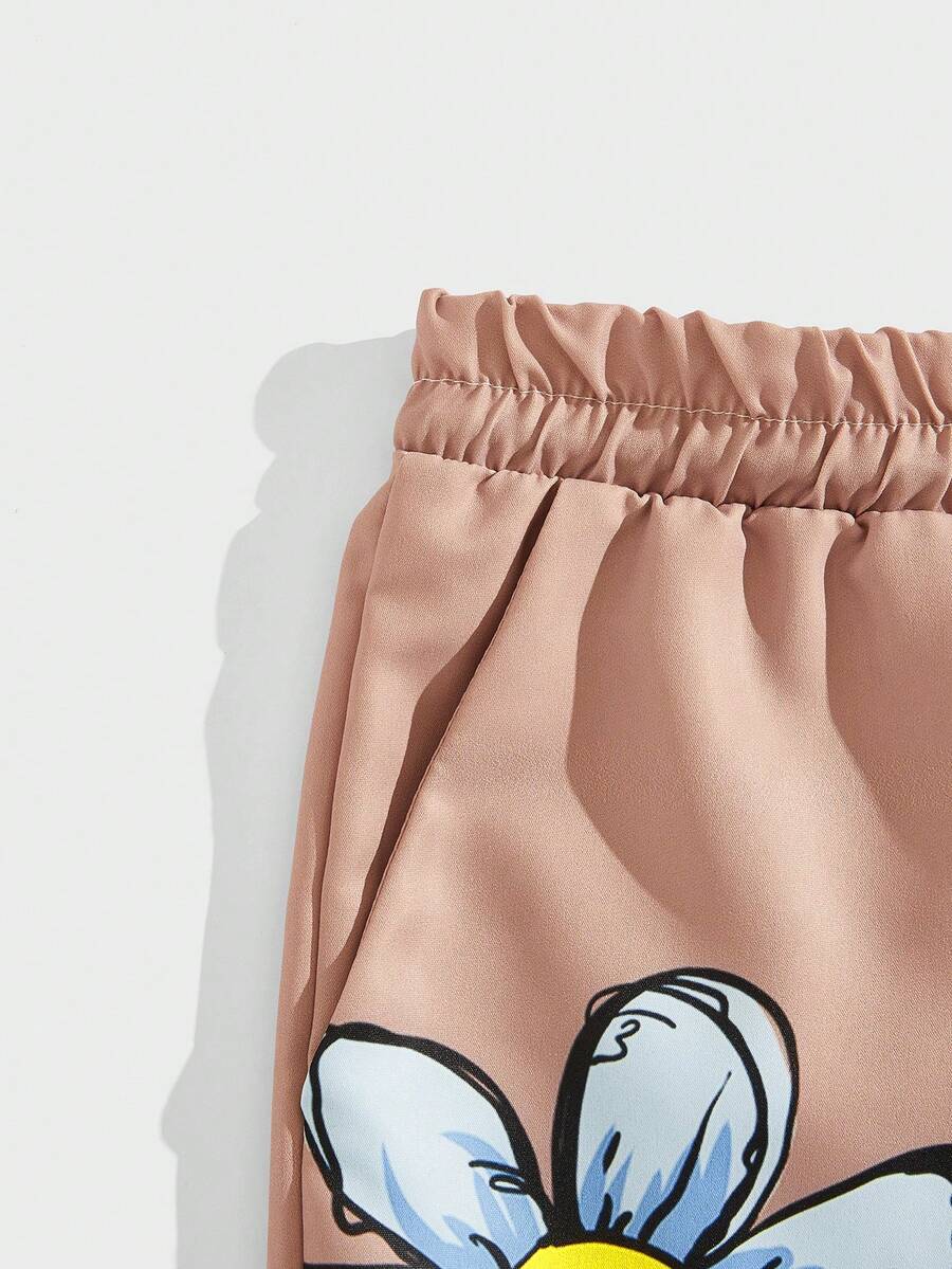 Street Life Guys Floral & Letter Graphic Drawstring Waist Pants