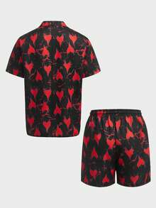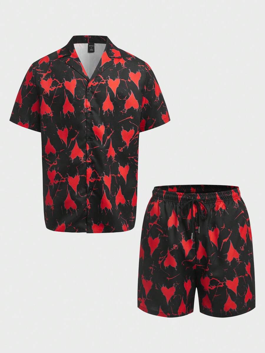 Street Life Guys Heart Print Shirt & Drawstring Waist Shorts