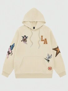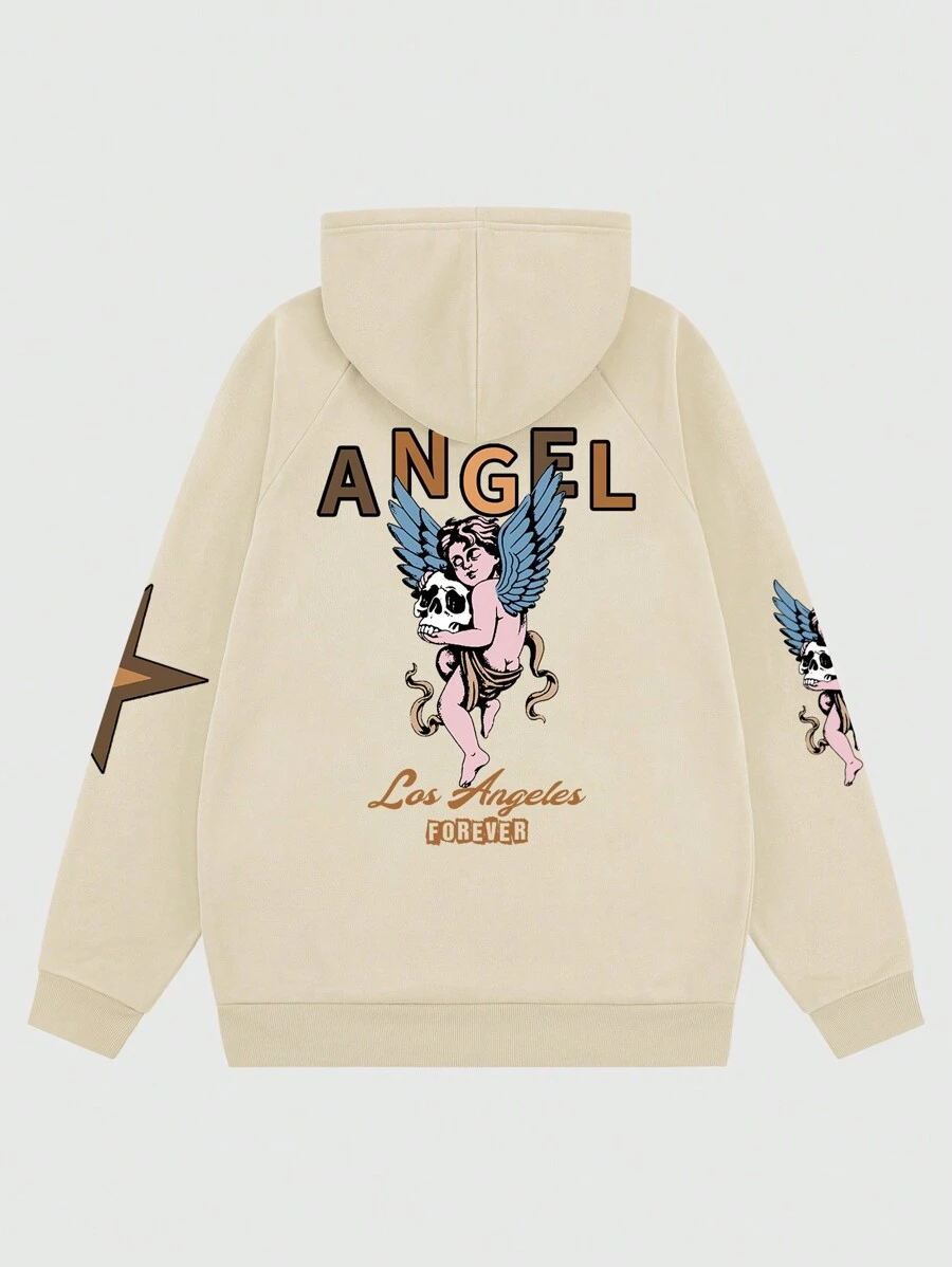 Street Life Guys Letter & Figure Graphic Raglan Sleeve Drawstring Hoodie