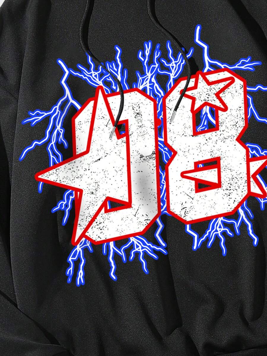 Street Life Guys Letter Graphic Drawstring Hoodie