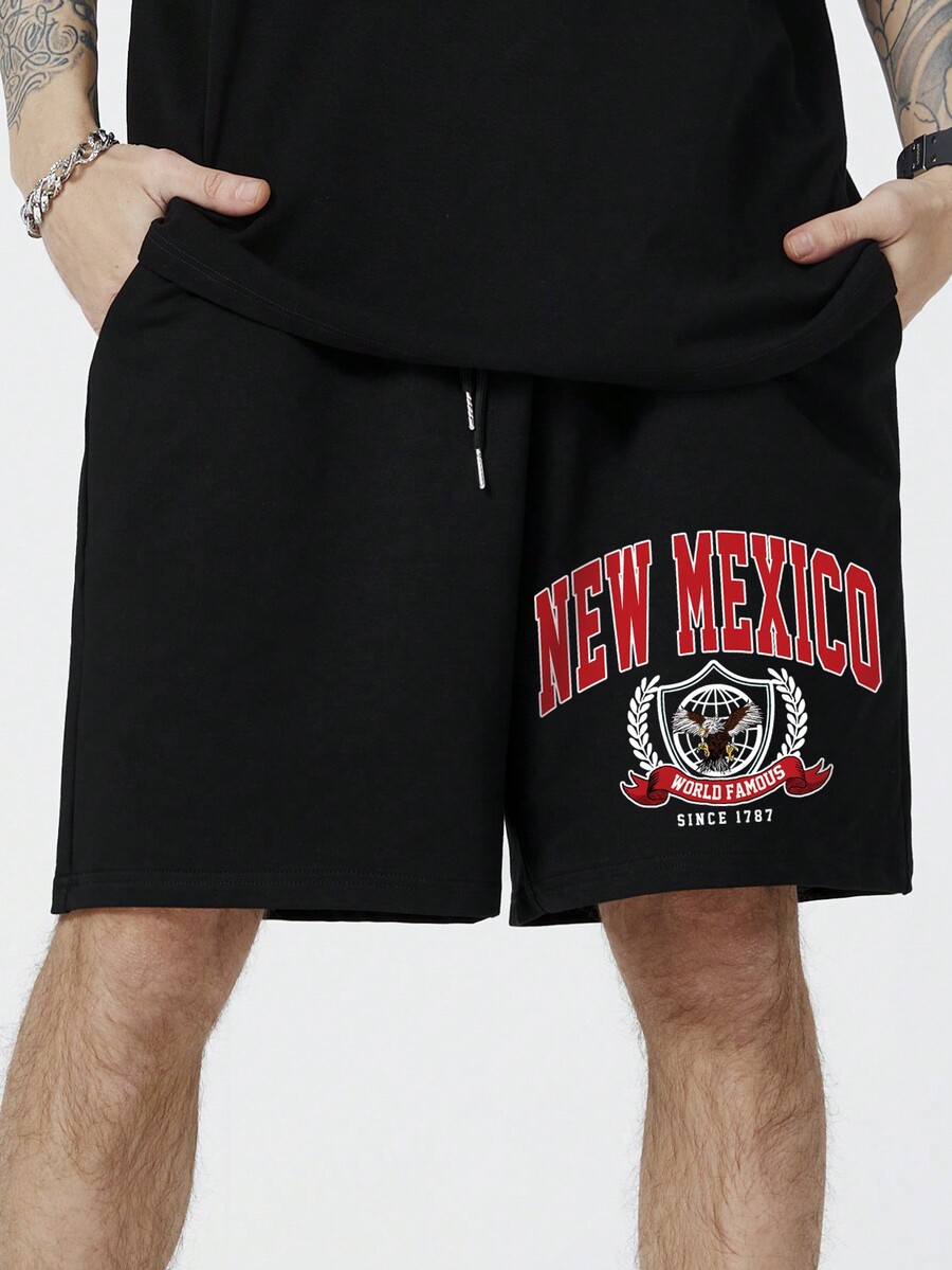 Street Life Guys Letter Graphic Drawstring Waist Shorts