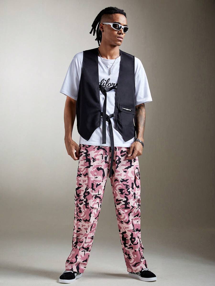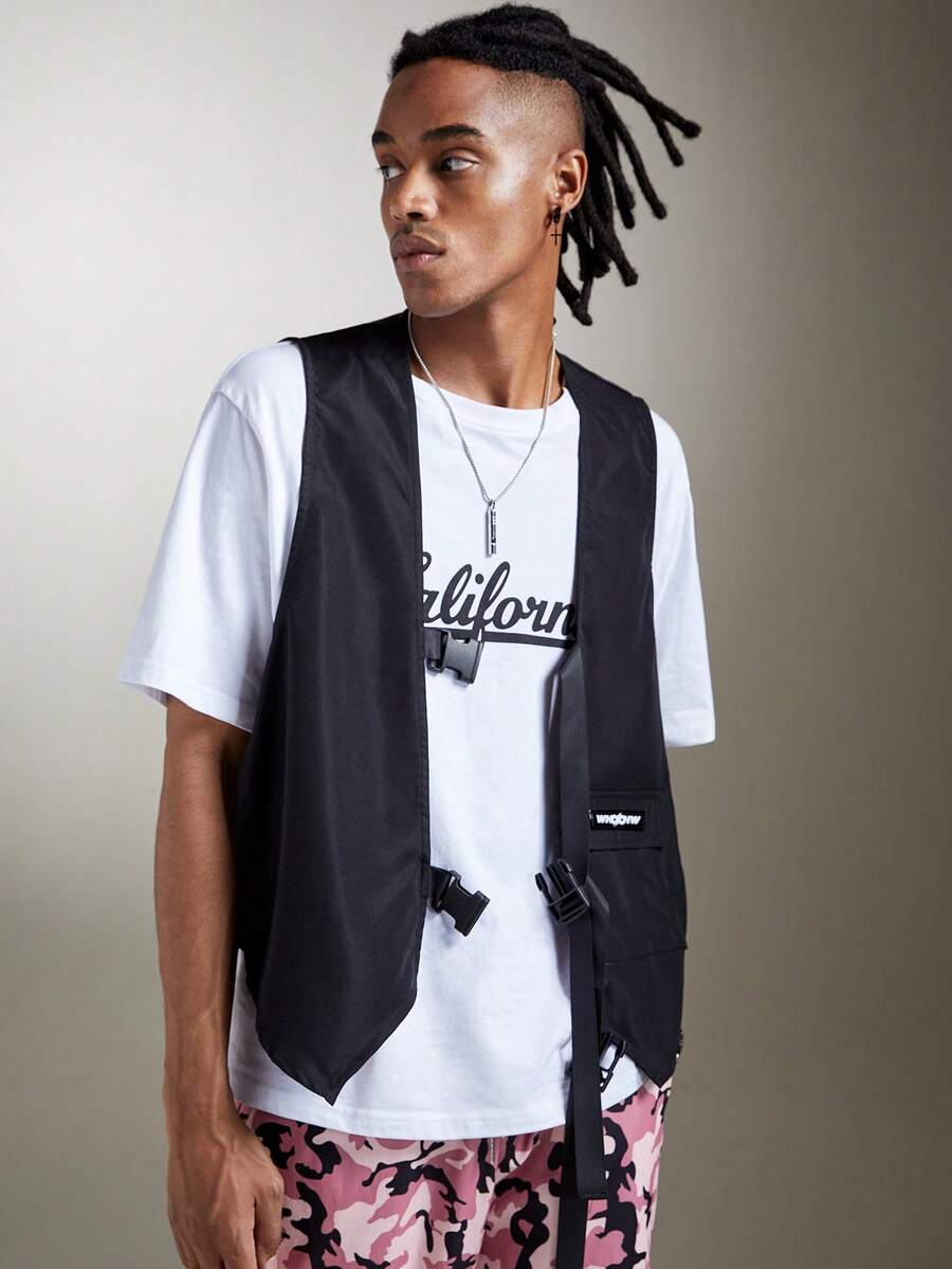 Street Life Guys Letter Patched Buckle Vest Jacket