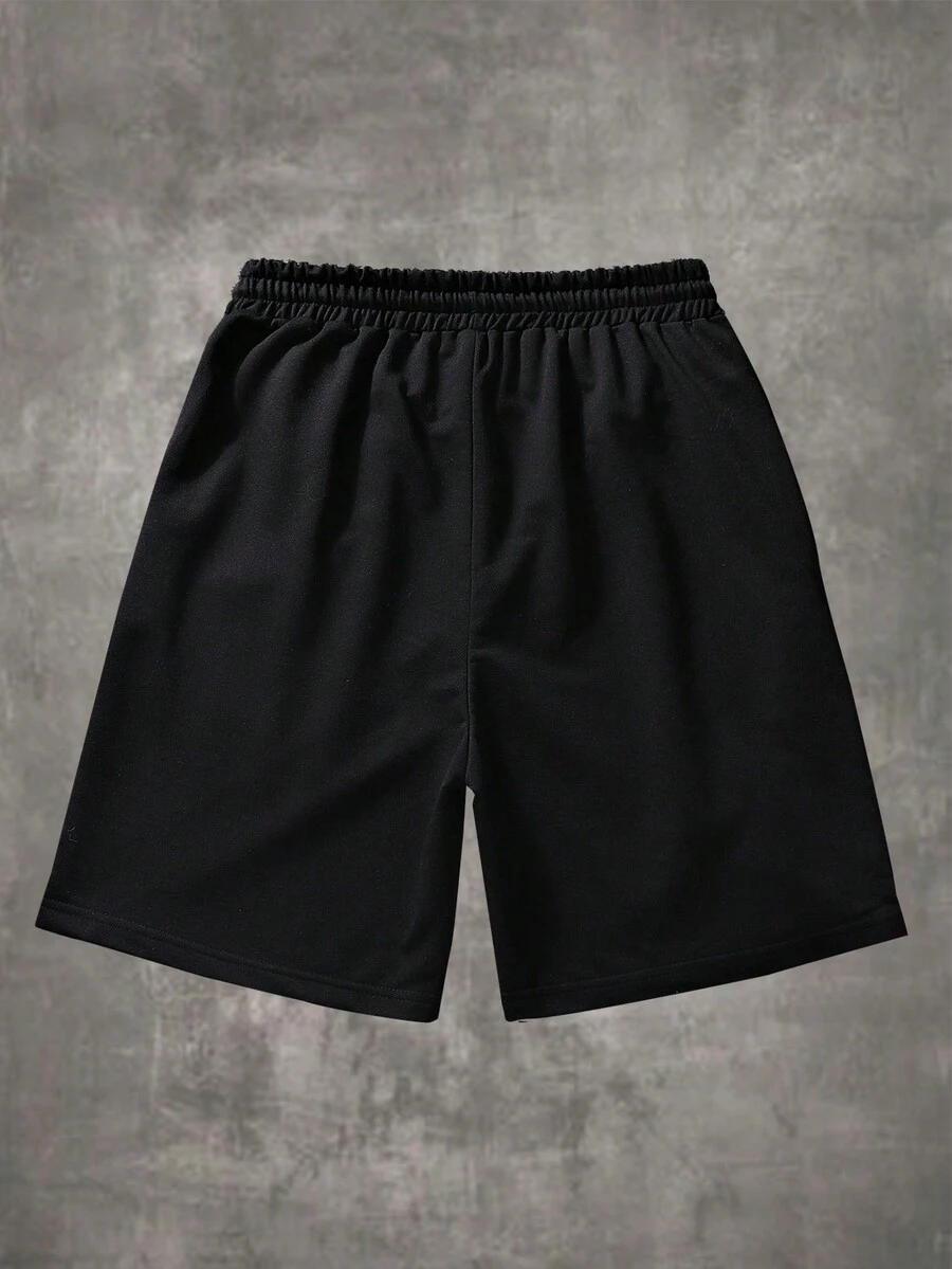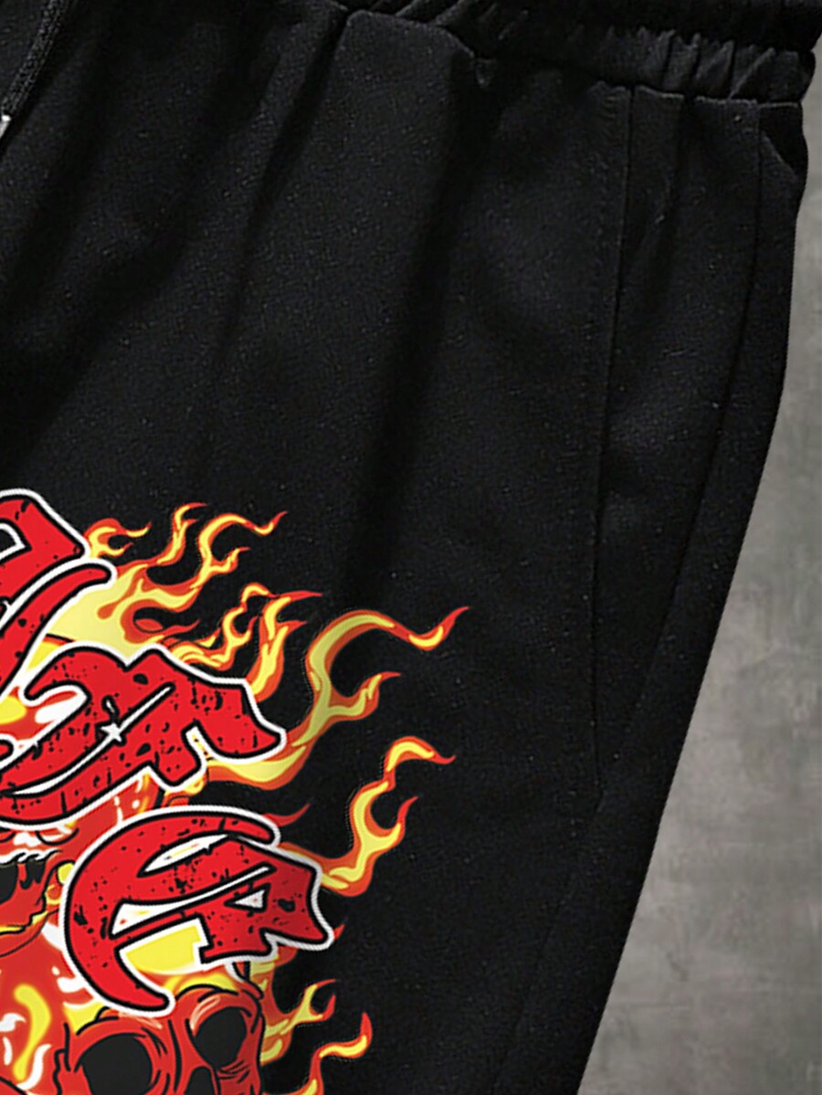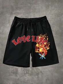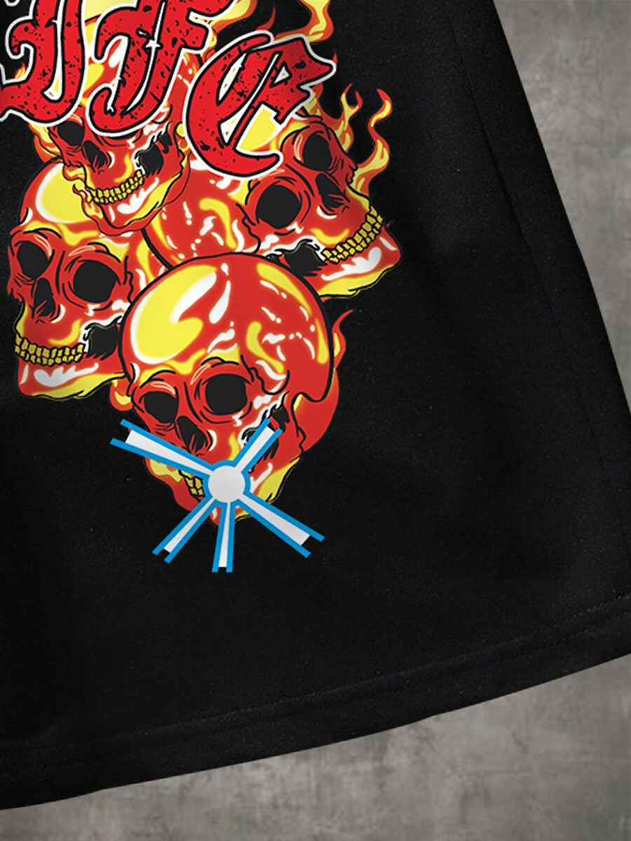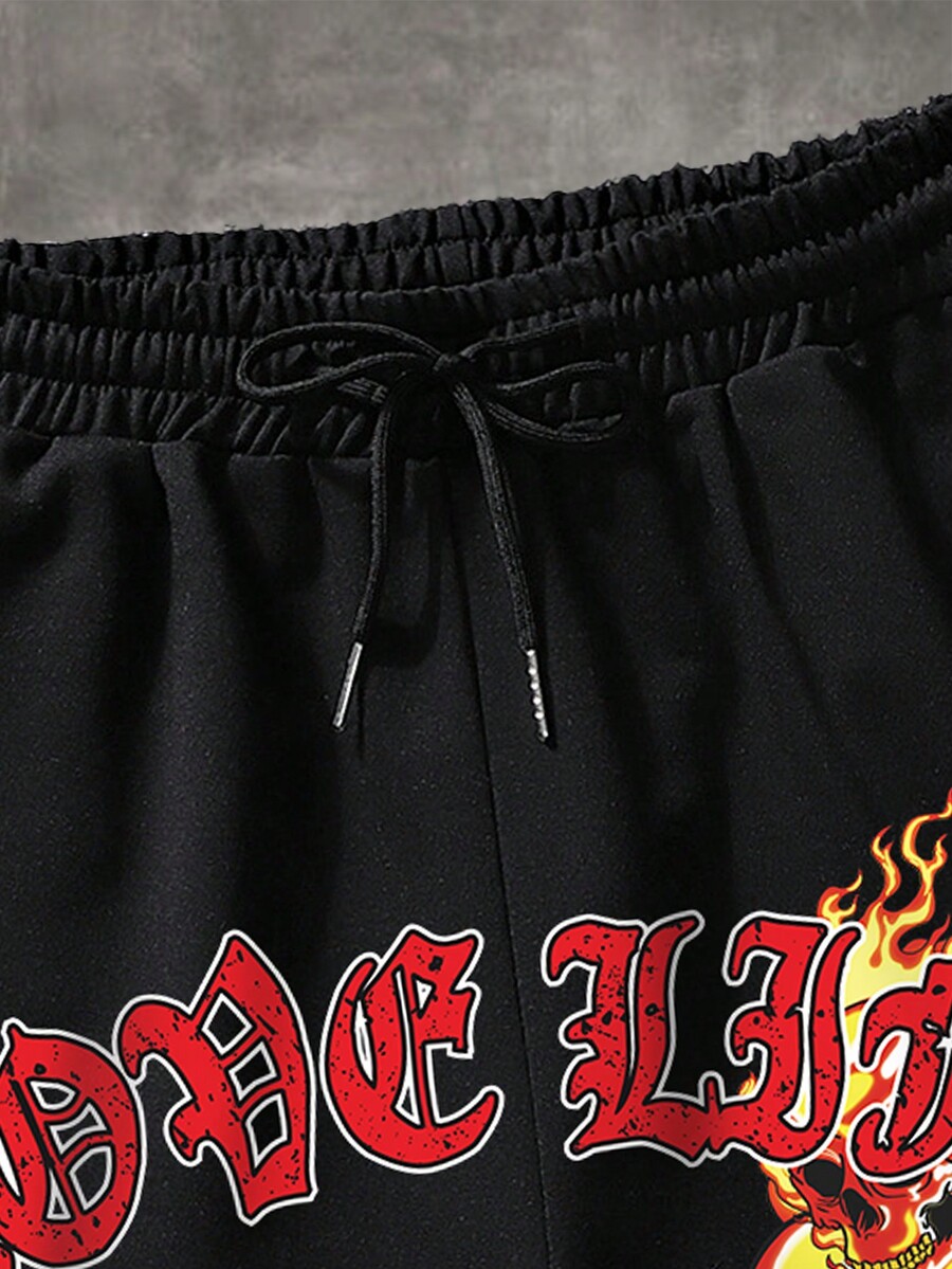 Street Life Guys Skull Letter Graphic Drawstring Waist Shorts