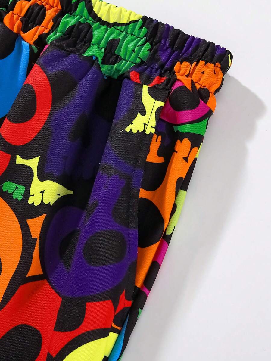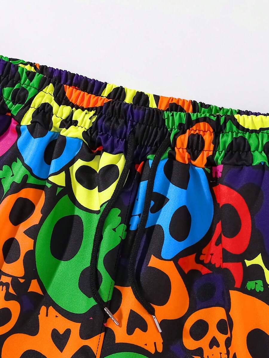 Street Life Guys Skull Print Drawstring Waist Shorts