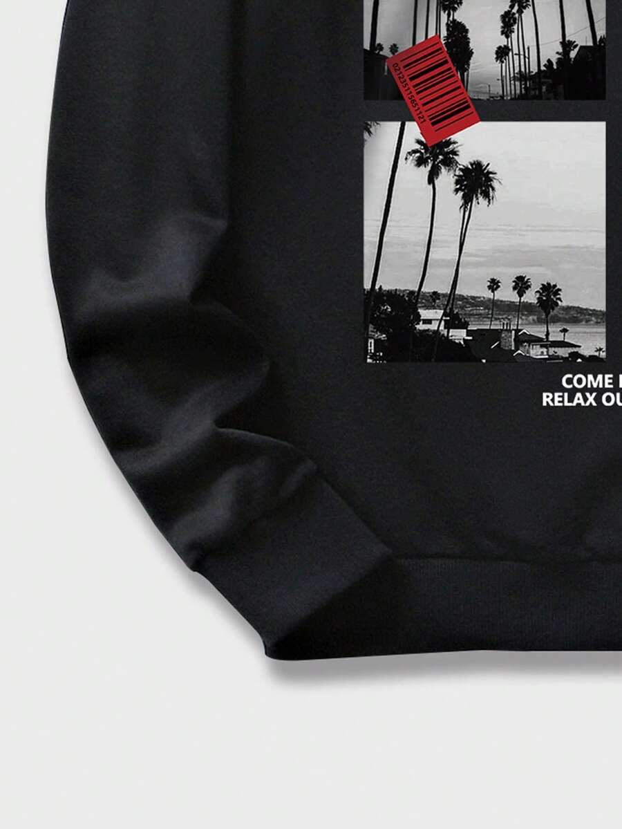 Street Life Guys Slogan Graphic Drawstring Hoodie