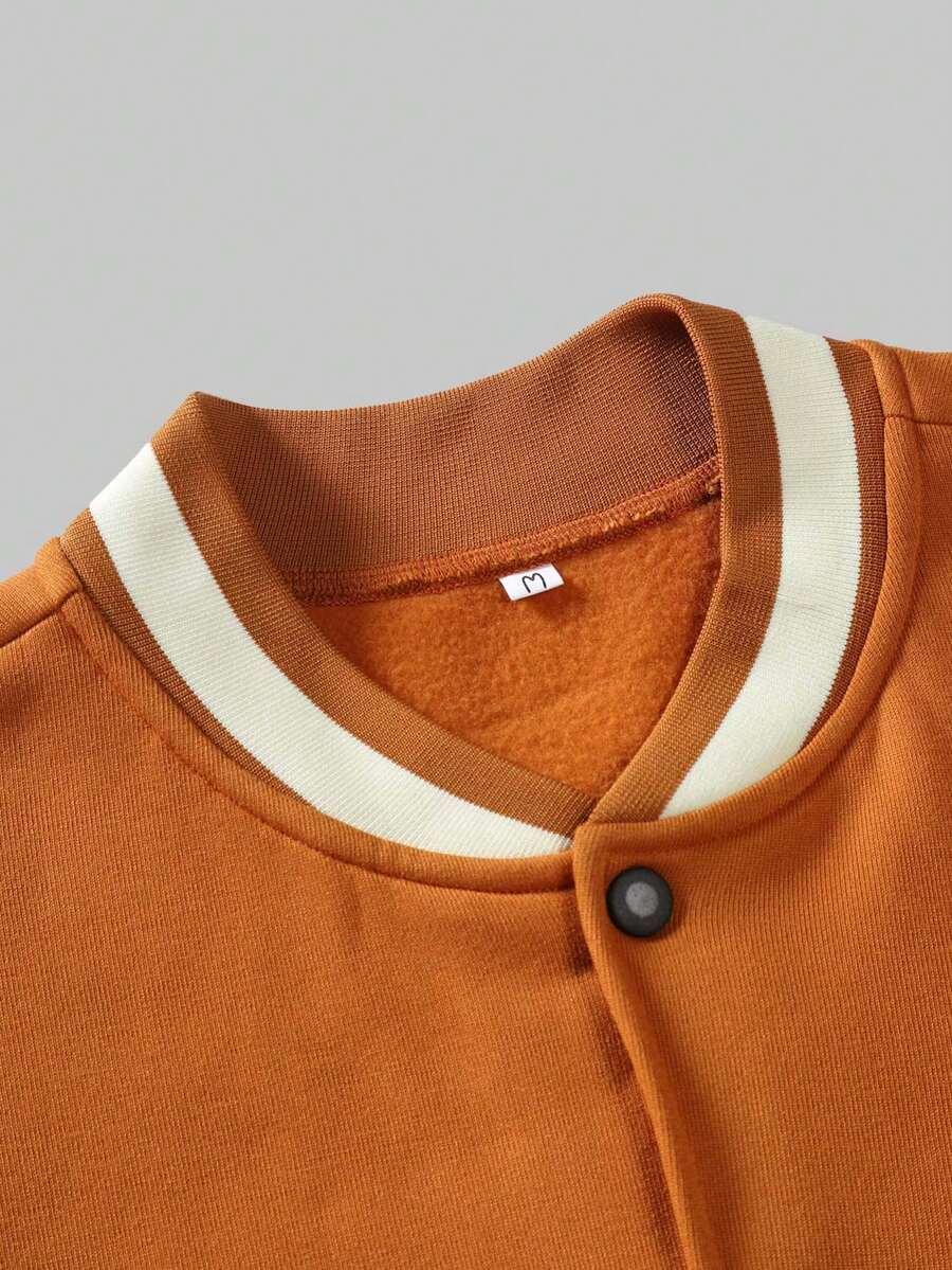 Street Life Guys Slogan Graphic Two Tone Striped Trim Varsity Jacket Without Hoodie