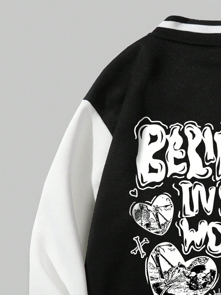 Street Life Guys Slogan Graphic Two Tone Varsity Jacket Without Hoodie