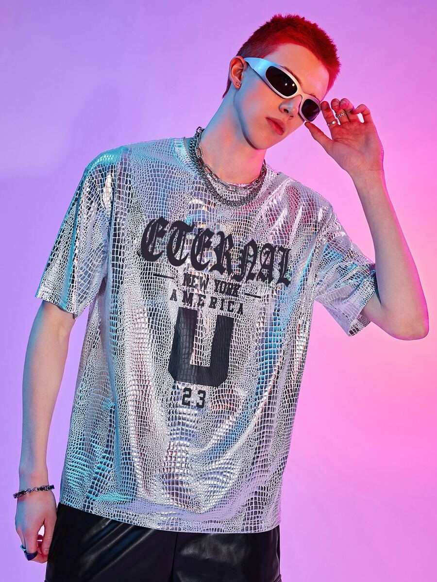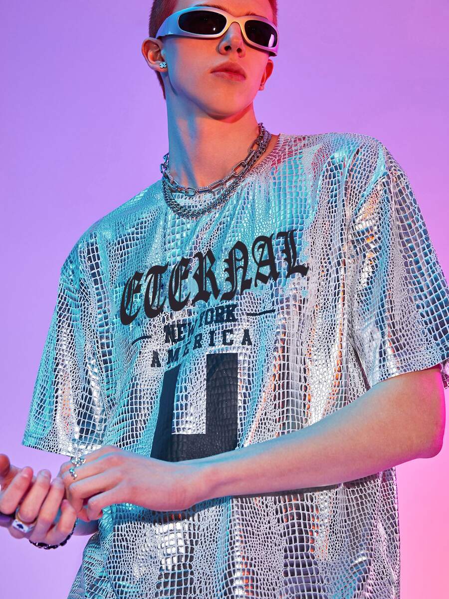 Street Life Guys Snake Skin Print Letter Graphic Tee