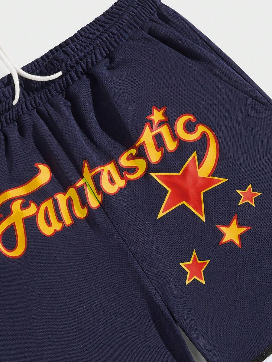 Street Life Guys Star & Letter Graphic Drawstring Waist Striped Shorts