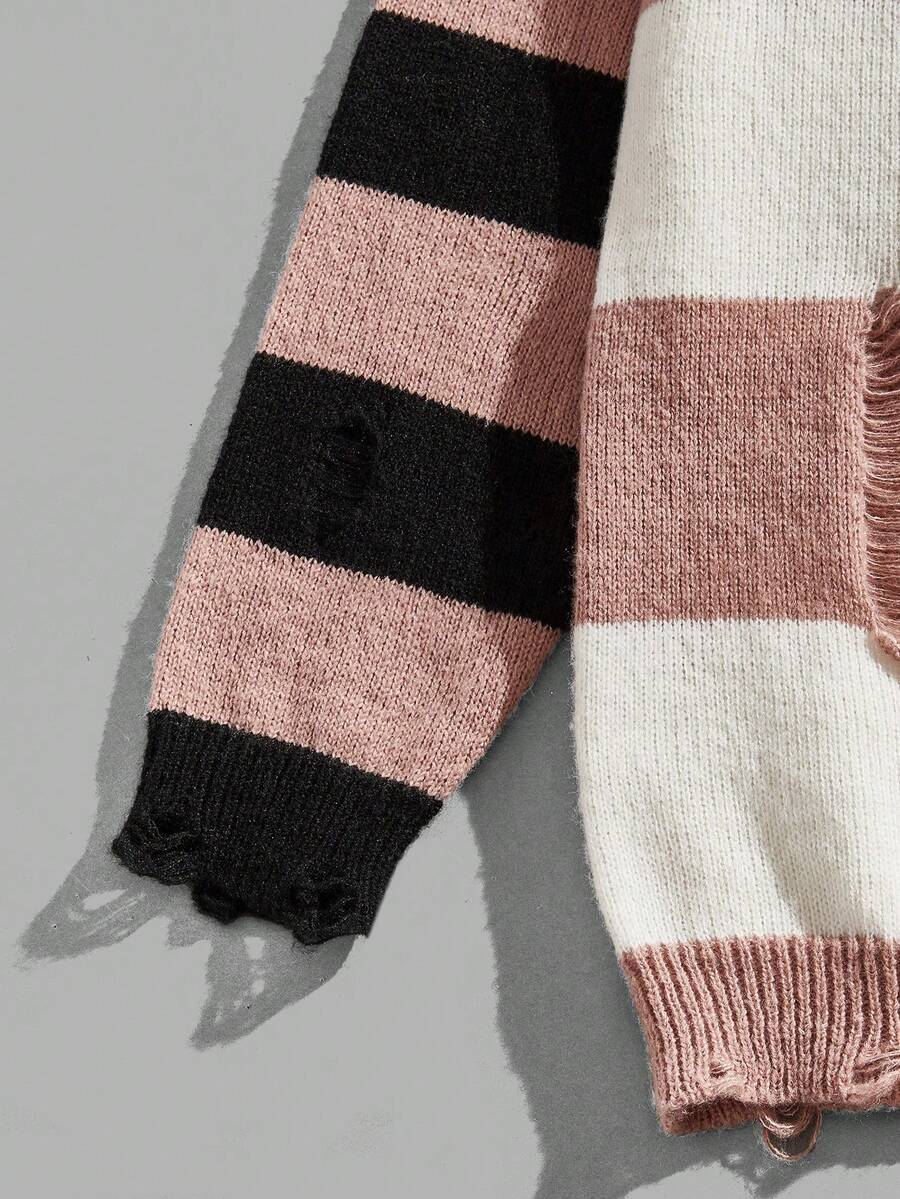 Street Life Guys Striped Distressed Sweater