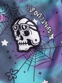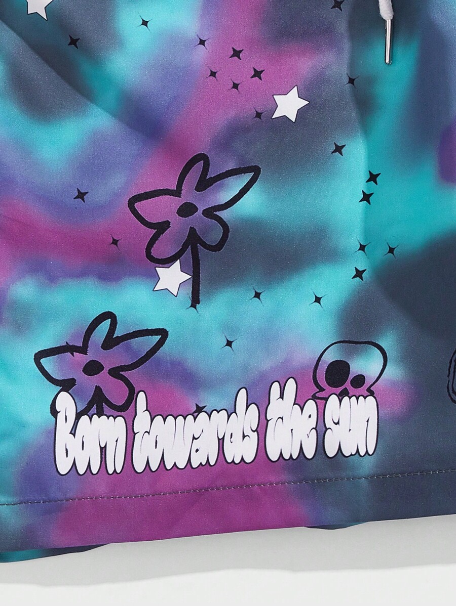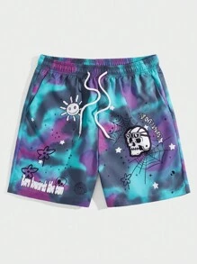 Street Life Guys Tie Dye Skull & Letter Graphic Drawstring Waist Shorts